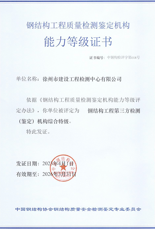 徐州市建設(shè)工程檢測中心有限公司(以下簡稱徐建檢測公司)是徐州市產(chǎn)城發(fā)展集團有限公司(以下簡稱產(chǎn)城集團)的全資子公司。徐建檢測公司前身為徐州市建設(shè)工程檢測中心,2018年事轉(zhuǎn)企改制,2020年4月,完成轉(zhuǎn)企改制資產(chǎn)劃轉(zhuǎn)工作。 徐建檢測公司是集檢測、檢驗、鑒定、咨詢等技術(shù)服務(wù)為一體、具有獨立法人資質(zhì)的綜合性第三方服務(wù)機構(gòu)。公司主要從事建設(shè)工程領(lǐng)域相關(guān)工程質(zhì)量檢測及技術(shù)咨詢服務(wù),業(yè)務(wù)覆蓋地基基礎(chǔ)、建筑材料、建筑結(jié)構(gòu)、鋼結(jié)構(gòu)工程、市政工程、綠色建筑節(jié)能工程、建筑安全與施工設(shè)備、建筑防水、建筑水電、裝飾裝修、建筑物防雷、室內(nèi)環(huán)境、房屋安全鑒定、城市軌道交通工程等專業(yè)領(lǐng)域。......
